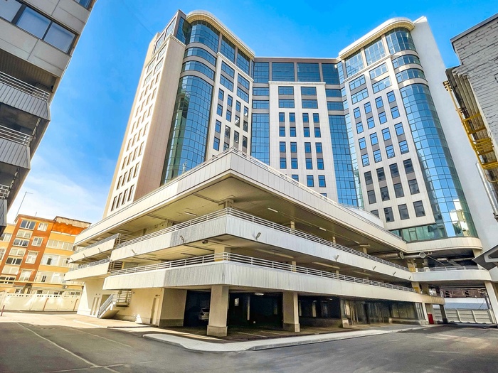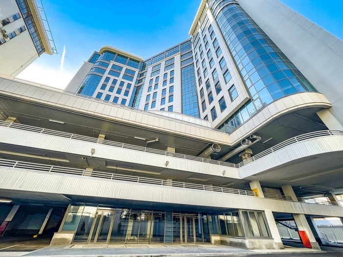 Комплекс оборудован 8 пассажирскими и 2 грузовыми лифтами бренда Orona с интеллектуальной системой управления, что обеспечивает быстрый и эффективный доступ на все этажи. Для автомобилей предусмотрен крытый наземный паркинг на 150 мест. На первом этаже расположены ресепшен, зона ожидания и стильный кофе-поинт, создающие комфортную атмосферу для деловых встреч и повседневной работы.